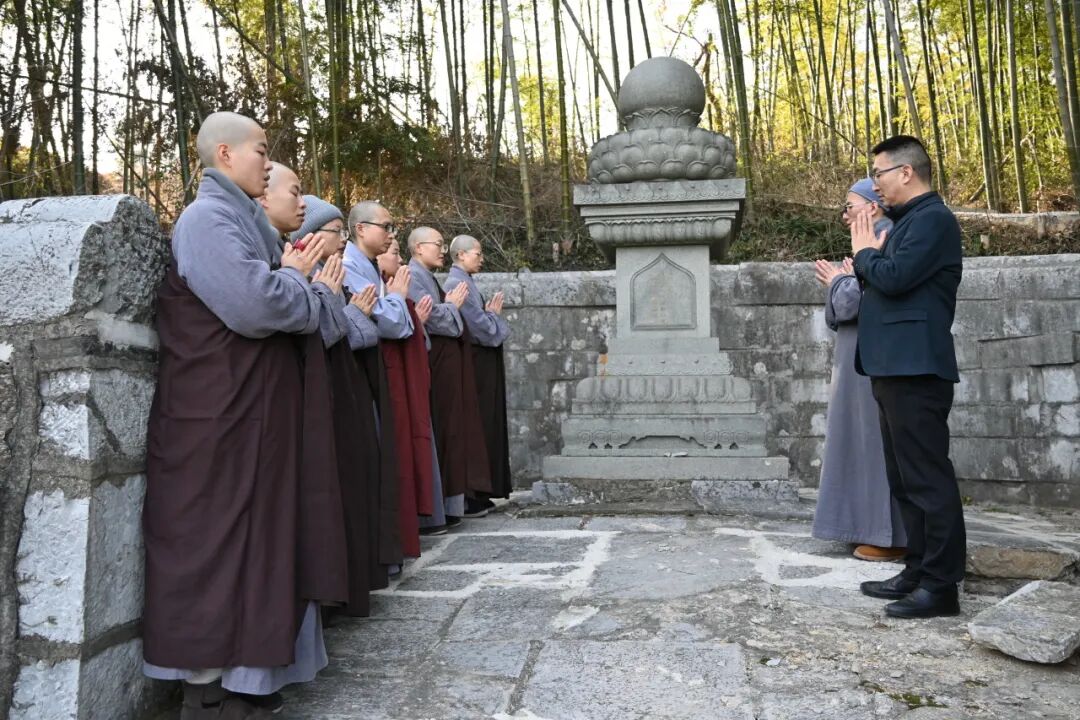 随后众人前往朝礼隆昌寺地宫佛祖舍利塔、三昧律祖灵塔、见月律祖灵塔,以及自民国以来弘律演教、作育僧才,对佛教法灯相传、佛种相续做出莫大贡献的律门尊宿——慈舟老法师灵塔。