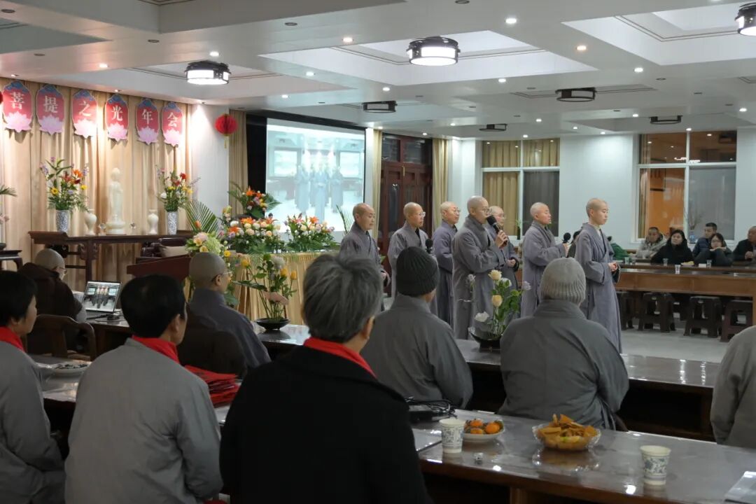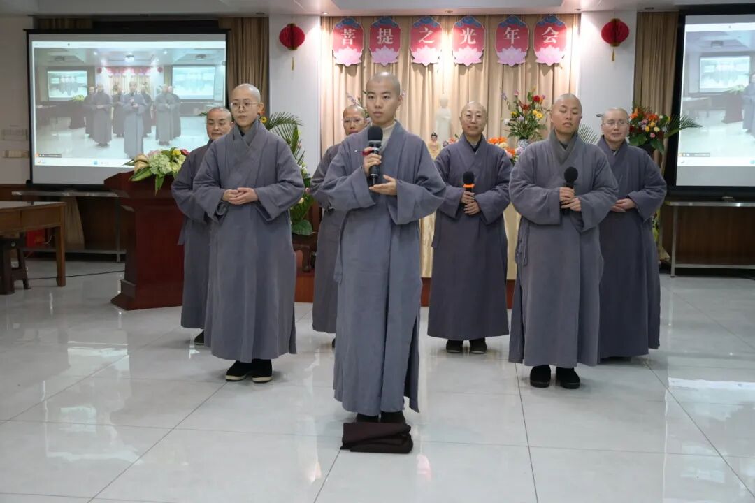 金龙辞旧岁,灵蛇启新春。2025年伊始,广长律院僧团饮水思源,重视修行根本,秉承佛门尊师重道之传统,尊重中国传统习俗,阖寺上下虔诚恭敬举行了纪念佛祖成道、莲宗祖师圣诞,以及朝礼律宗诸位祖师等一系列感恩、缅怀活动。 喜迎腊八节,恭贺本师释尊成道 “小孩小孩你别馋,过了腊八就是年……”年年岁岁,伴随着一首家喻户晓的童谣,中国人拉开过年的序幕,心头的年味逐渐弥漫。 腊八节最初源自于佛教。据佛经记载,本师释迦牟尼佛最初在菩提树下苦修,形销骨立,后放弃苦行,接受了牧女呈献的乳糜,食后体力恢复,端坐沉思,于十二月八日这一天“成道”,茫茫黑暗中的三界众生从此有了得度的希望。为感念佛恩,佛弟子特于此日举行法会,以谷米果物煮粥供佛。 自东汉佛教由古印正式传入中国,许多佛教节日便自然地中国化,成为中国传统文化与民间习俗不可或缺的重要部分。南宋吴自牧《梦粱录》载:“此月八日,寺院谓之腊八。大刹等寺,俱设五味粥,名曰腊八粥。”许多寺院会在这一天设会施粥与信众广结善缘,予以吉祥祝福,因此,腊八粥也叫“福寿粥”“福德粥”“佛粥”。腊八节已成为中国家喻户晓的民间节日。 2025年,广长律院虽未如往年对外施粥,但依旧遵循佛门规制在寺内为大众煮腊八粥并于本师释迦牟尼佛前虔诚设供,纪念、缅怀与感恩本师释迦牟尼佛为我等众生坐菩提座、成等正觉的难喻深恩。 大众欢度菩提年会,纪念莲宗十三祖诞辰 ▲莲宗十三祖印光大师德相 1月11日(农历腊月十二)为莲宗第十三代祖师印光大师诞辰。印祖生于晚清,显于民国,世称大势至菩萨再来,是与末法念佛行人年代距离最近、因缘甚深的一位祖师,以浩瀚的《印光法师文钞全集》弘化一时并遗传于世,被誉为“法雨”老人。现代莲宗导师上传下印长老曾一再切勉行人:“《印光法师文钞》就是一部小藏经,大藏经可不读,小藏经不可不读,切,切!” 新年伊始恭逢印祖诞辰,广长律院作为“毗尼为依,净土为归”的持戒念佛专修道场,僧俗二众于线上、线下欢度“菩提之光”年会,以梵呗、赞颂等多种形式表达了对三宝、对祖师的感恩与缅怀之情。 广长律院“菩提之光”年会·花絮 ▲广长律院住持上妙下丰法师在年会开始后为大众作开示 ▲广长律院式叉尼表演情景剧《顺治归山诗》 ▲律院护法居士献唱佛歌《极乐世界是我家》 ▲居士们敬献节目 ▲线上与幕后、观众席参与情况 ▲上妙下丰法师作会后总结开示 ▲会后合影 “菩提之光”·视频回放 ▲广长律院比丘尼献唱《思归故乡》 ▲广长律院上海皈依弟子合作献唱《愿》