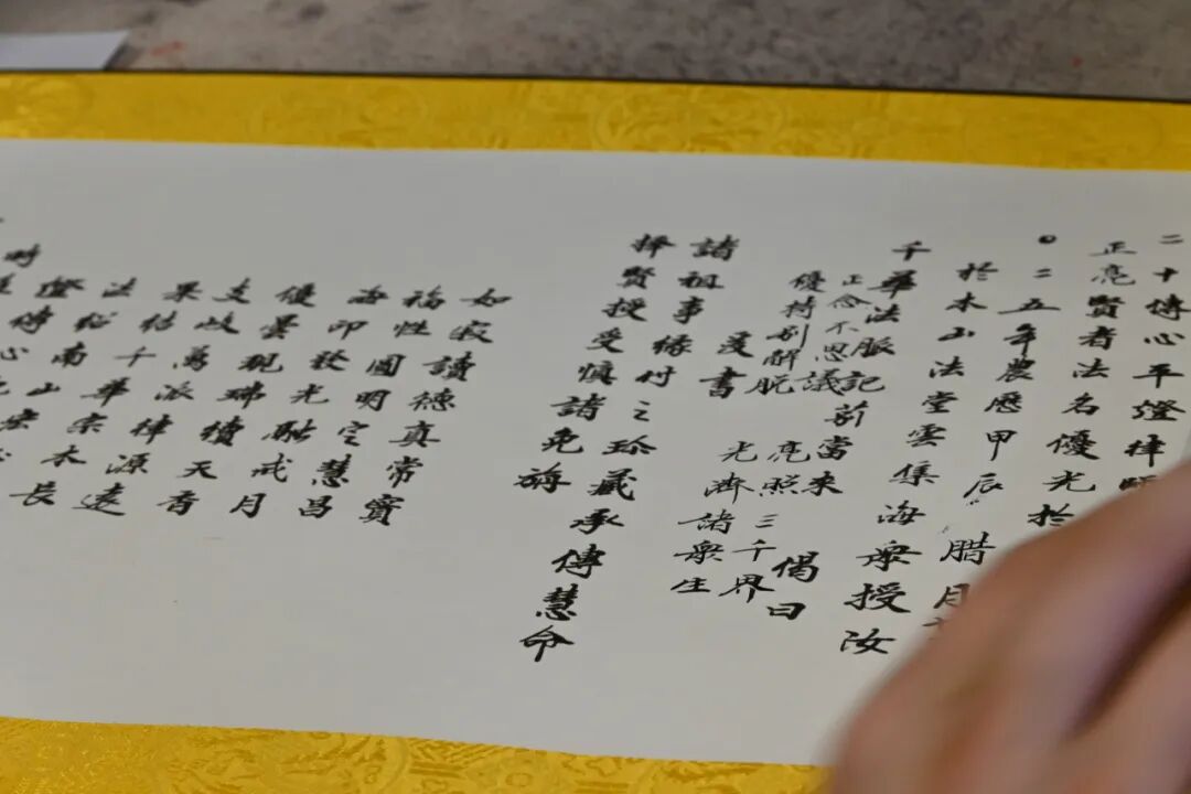 ▲上心下平大和尚为三位比丘法师传法并书写法卷
