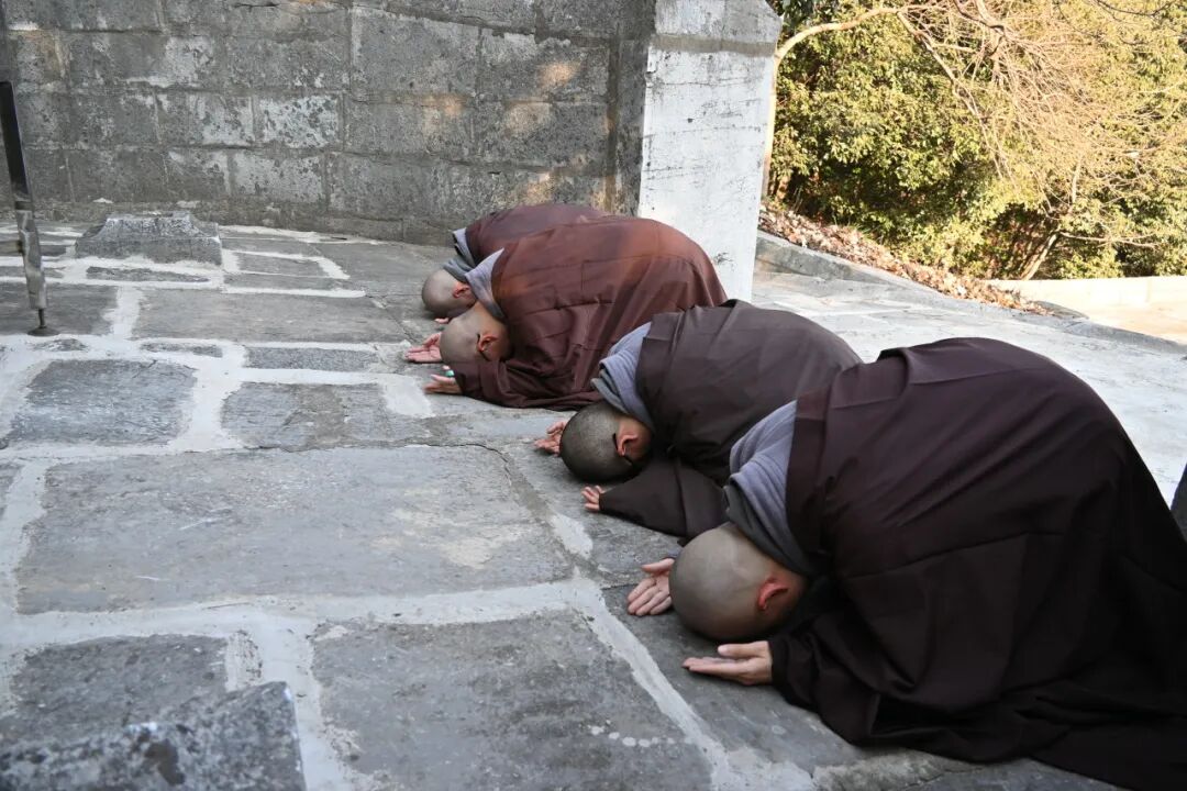 经云,见塔如见佛。朝礼众在佛祖、祖师、大德善知识灵塔前五体投地虔诚礼拜,并祈求佛祖祖师慈悲加被护佑,广长律院道场兴盛。祈愿各人业消智朗,学律持戒顺利无碍,尽心护持律宗祖庭,护持善知识弘律传戒,令正法久住,令众生得度。