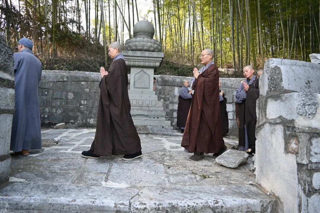▲广长律院僧众在慈舟老法师灵塔前恭敬礼拜、合影留念